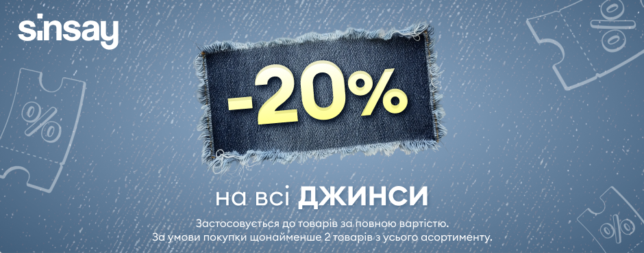 Знижка -20% на всі джинси вже чекає на Вас у Sinsay!